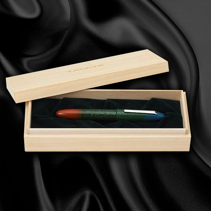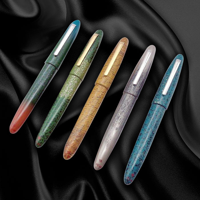 In the 17th century, Tsunanori Maeda, the fuedal lord of the Kaga Domain, collected a series of historically important craftsmanship techniques now referred to as Hyakko-Hisho. To honor the artwork and creativity of this original period, we have created the Kaga Limited Collection to pay homage to the history and tradition of this celebrated period. Each fountain pen is made by hand in our Urushi studio in Wajima, enhancing traditional inlay techniques with precious metals and lacquer. To blend the old with the new, each fountain pen comes fitted with a Japanese 18K gold nib, over a selection of individually polished Ebonite barrels. And to truly bring historical craftsmanship into your hand, each series is limited and signed by our maki-e artisan.