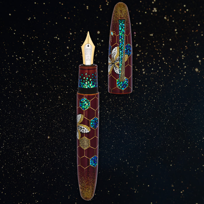 TACCIA introduces the Empress Honey Bee and Empress Whispering Pond Maki-e LE fountain pens in celebration of its 20th anniversary. Handmade by renowned Japanese Maki-e artists, these fountain pens feature the highest quality Japanese mother of Pearl, New Zealand abalone, and an exceptional 18 kt gold King of Pen nib made in Japan exclusively for TACCIA. Limited to 20 pens in each design.